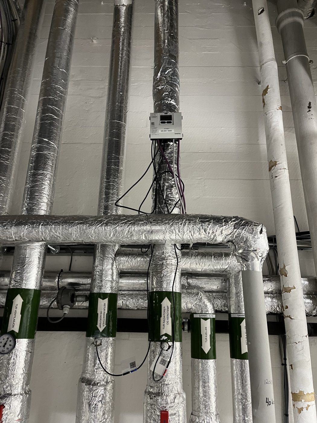 Installed Energy flow meter including a mass flow meter and two temperature sensors.